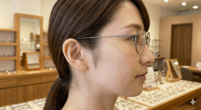 - 外見: メガネが顔の正しい位置にあり、フレームと目の距離が適切です。